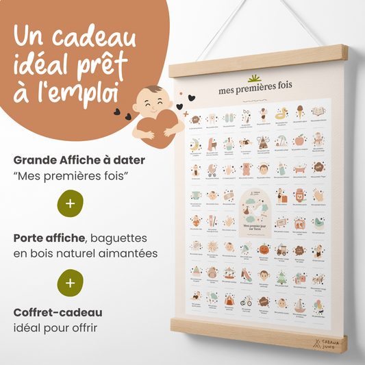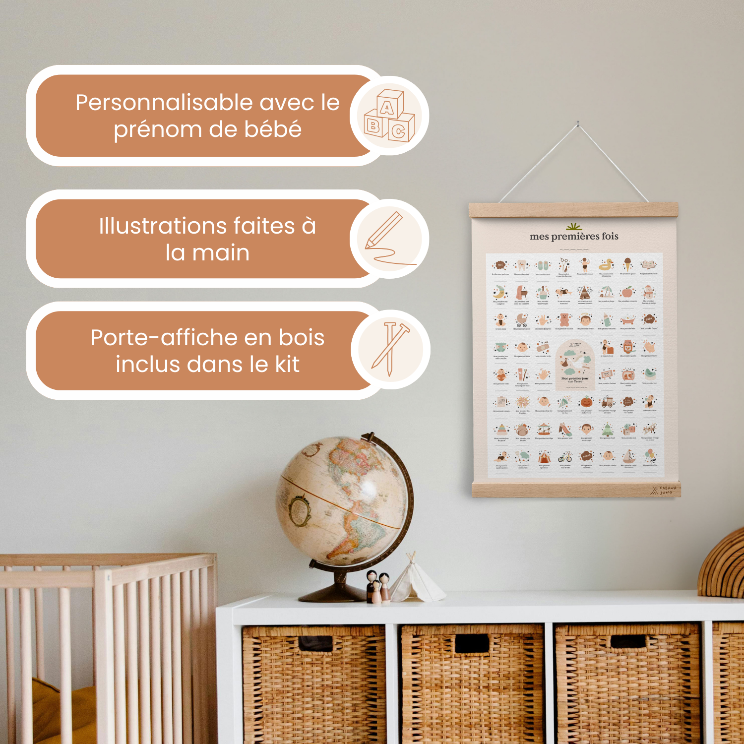 Une affiche Mes Premières Fois à tamponner, émouvante et unique conçue pour immortaliser les 60 évènements les plus précieux de la vie de votre bébé.